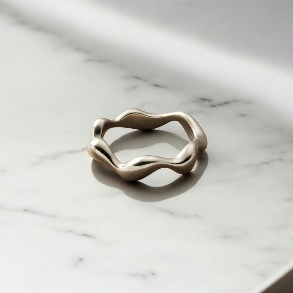 ぷっくりとしたウエーブデザインが特徴的なこのリングは、シンプルながらもユニークな存在感を放ちます。