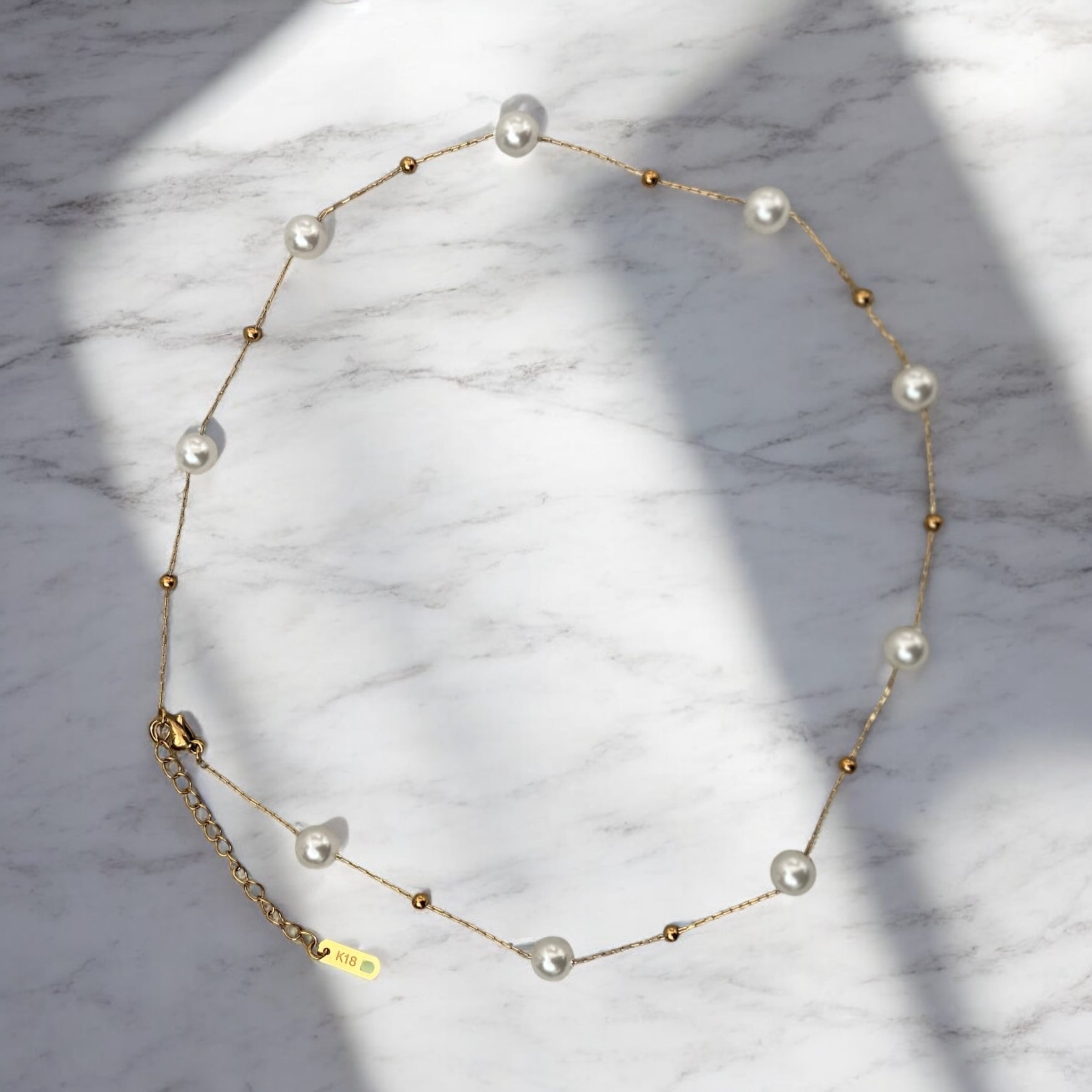 パールとゴールドの玉が絶妙に組み合わさったこのパールチェーンは、シンプルながらも自分らしさを引き立てるデザインが魅力です!首元に華やかさを添えるパールの輝きは、ラフな格好をオシャレに演出し、幅広いシーンで活躍できるアイテムとなっています✨