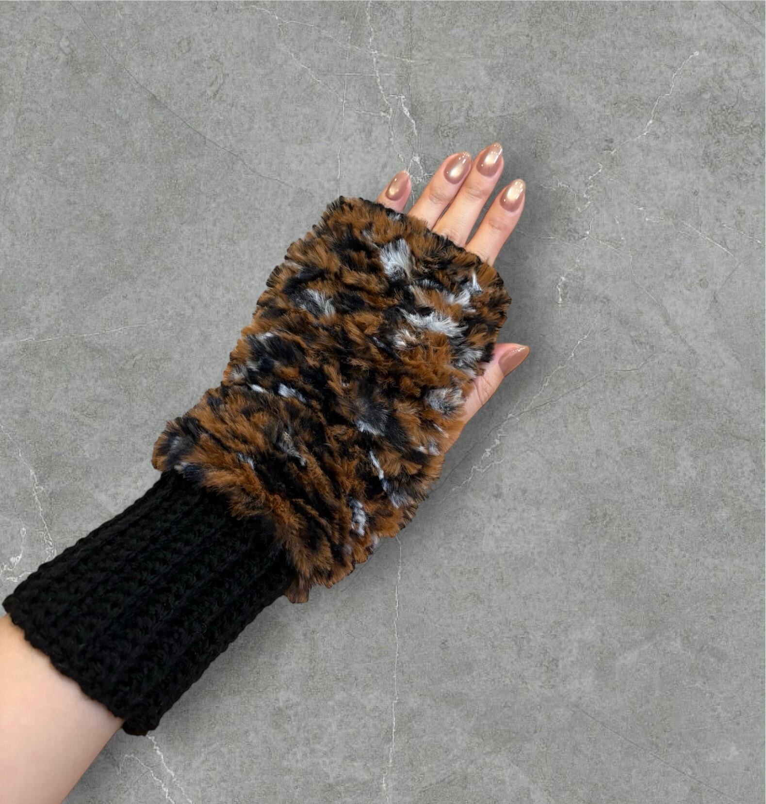 安心感のあるモコモコの素材感が魅力のこのモコモコバンドウォーマーは、シンプルながらも存在感があり、さまざまなスタイルにマッチするデザインです!マーブル調の模様がユニークです。