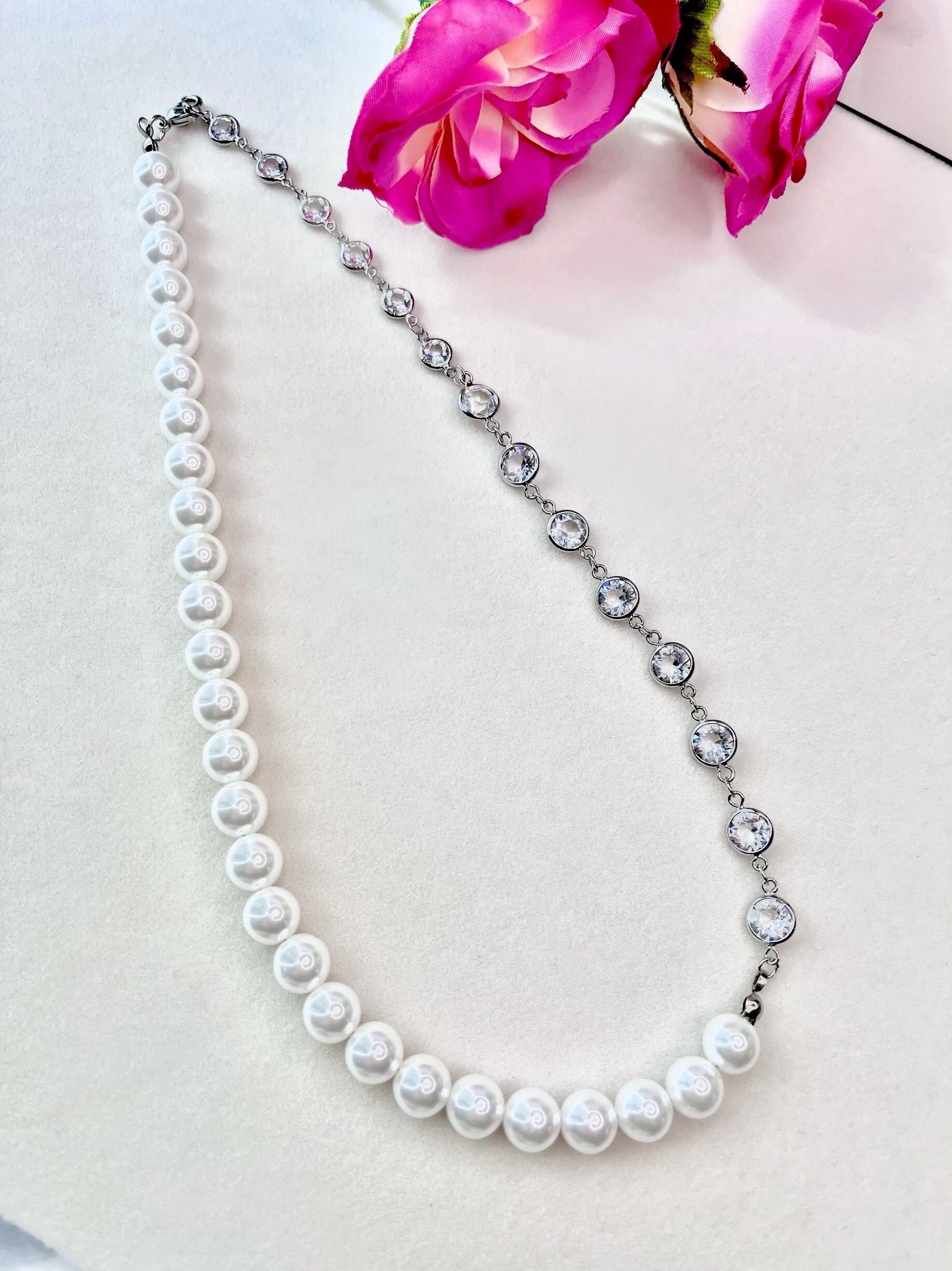 シャネルストーンパールネックレスは、上品でエレガントなデザインが魅力の一品です。ストーンとパールを組み合わせたアシンメトリーなデザインは、他にはない個性的な印象を与えてくれます。 大きさの異なるシャネルストーンの輝きと、華やかなパールが織り成す美しいハーモニーは、どんなファッションにもマッチし、さまざまなシーンで輝きを放つことでしょう。 このネックレスは、素材にもこだわっており、高品質なシルバーを使用しています。シルバーならではの上品な輝きが、首元を美しく彩ります。 シャネルストーンパールネックレスは、あなたのコーディネートにエレガントで華やかなアクセントを加えることができる一点です。