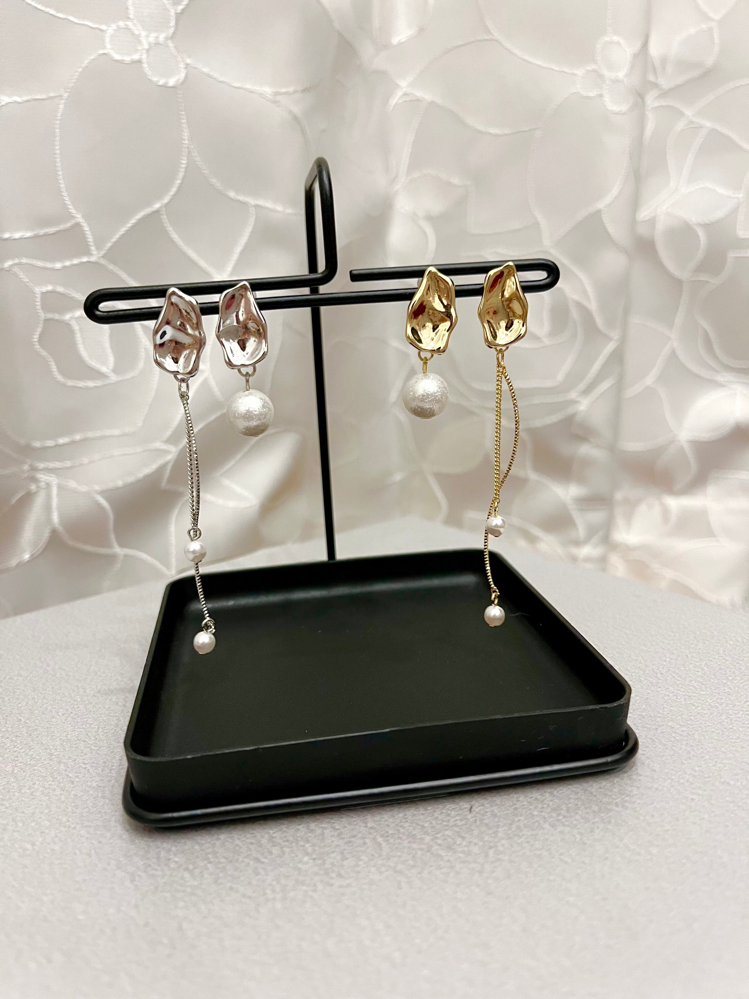 華やかさと個性を兼ね備えたアシンメトリーパールピアス。大きさの違うパールを組み合わせたデザインが、一つ一つの耳元をより鮮やかに彩ります。ゴールドとシルバーの2色展開なので、コーディネートに合わせて選べるのも魅力です。