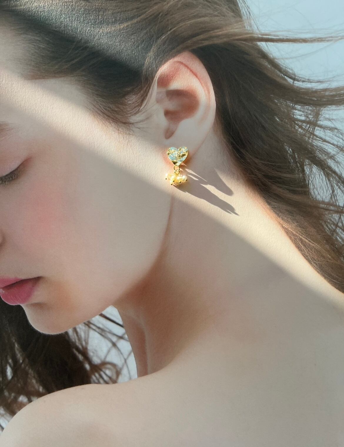 ハートの下にはいくつものパールが揺れ動き、さりげなく女性らしさを演出してくれます。カジュアルなコーディネートにも、きれいめスタイルにも、いつでも合わせることができるので、幅広いシーンで活躍します。