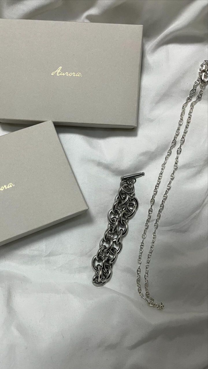 シンプルでありながら存在感のあるこの一品は、あなたのスタイリングにさりげなくアクセントをプラスしてくれることでしょう。日常の中にちょっとした華やかさを取り入れたいときには、ぜひこのチェーンブレスレットをお試しください。